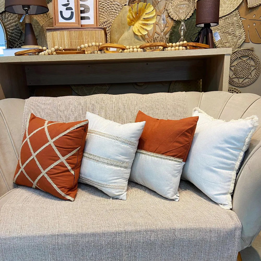 4 Capas de almofada Feitas em Linho misto e Rendas de Algodão e Juta.