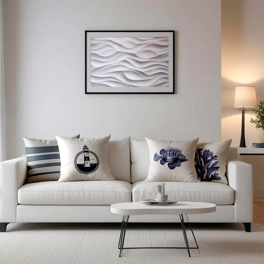 Azul Farol + Coral + Peixe + Listras - 45 x 45cm - As Capas de Almofada US Decor são uma ótima opção para atualizar a decoração da casa rapidamente, elas garantem personalidade a um cômodo e pode ser o toque que faltava para deixar o ambiente ainda mais aconchegante, com mais vida e charme.