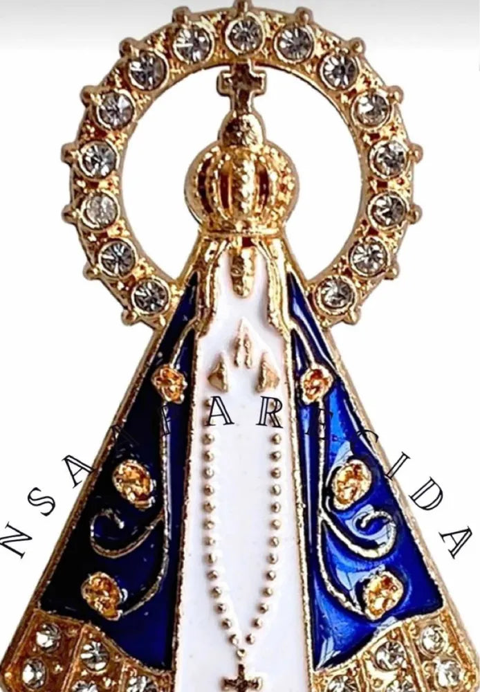 Imagem de nossa senhora Aparecida com dupla face e auto colante, contém aplicação de strass no manto e no resplendor com lindo acabamento