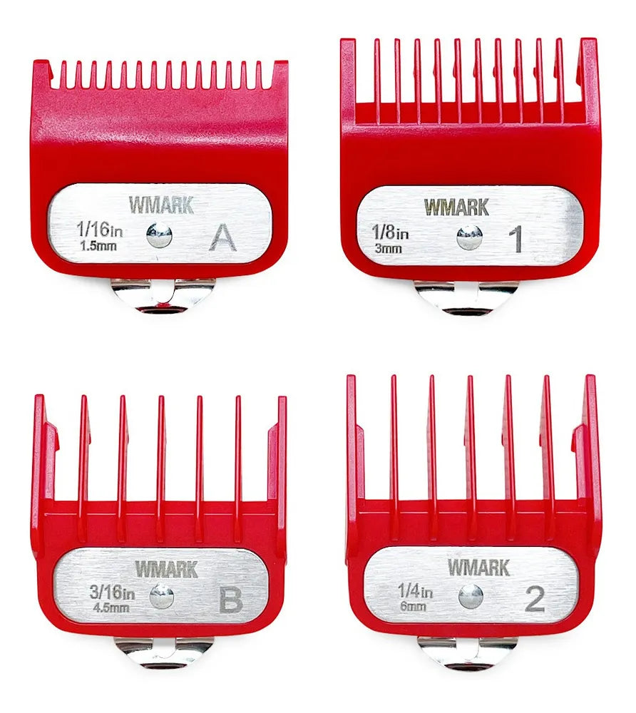 O Kit 4 Pentes Disfarce Reforçado Engate Metálico Plástico Abs é perfeito para quem busca um corte de cabelo impecável. Compatível com máquinas de cortar cabelo das marcas WAHL, WHAL, KEMEI e WMARK, este kit conta com 4 pentes reforçados que garantem durabilidade e precisão no corte. Ideal para cortes como fade, disfarce e degradê, proporcionando um acabamento profissional. Feitos em plástico ABS resistente, esses pentes são de alta qualidade e oferecem um encaixe seguro e preciso na máquina de cortar cabelo. Renove seu visual com praticidade e estilo com o Kit 4 Pentes Disfarce Reforçado Engate Metálico Plástico Abs.