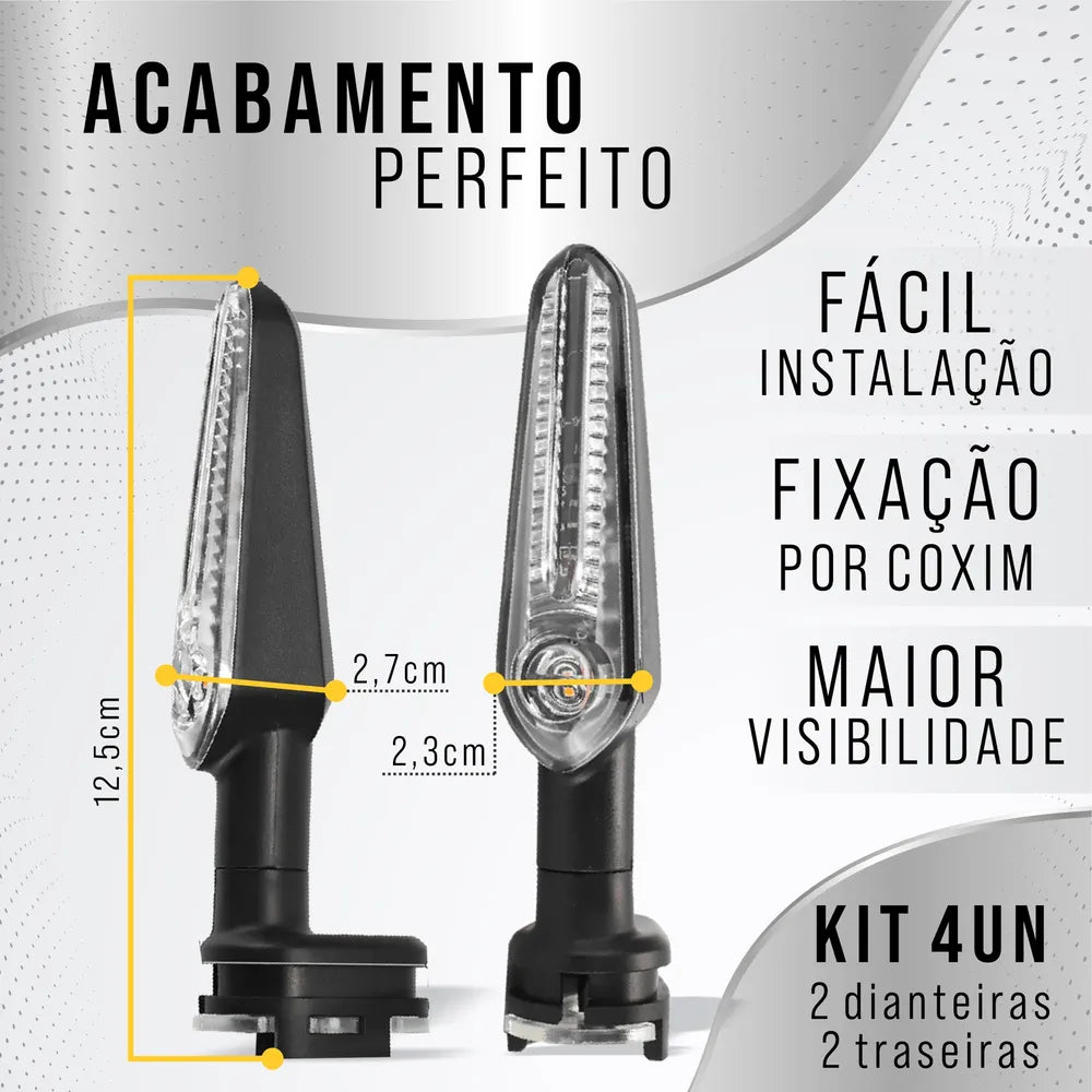 Com um design esportivo e minimalista, essas setas irão adicionar um toque premium a sua moto, proporcionando um estilo limpo e moderno, perfeitamente alinhado às tendências atuais.
