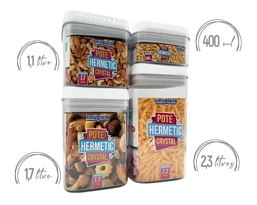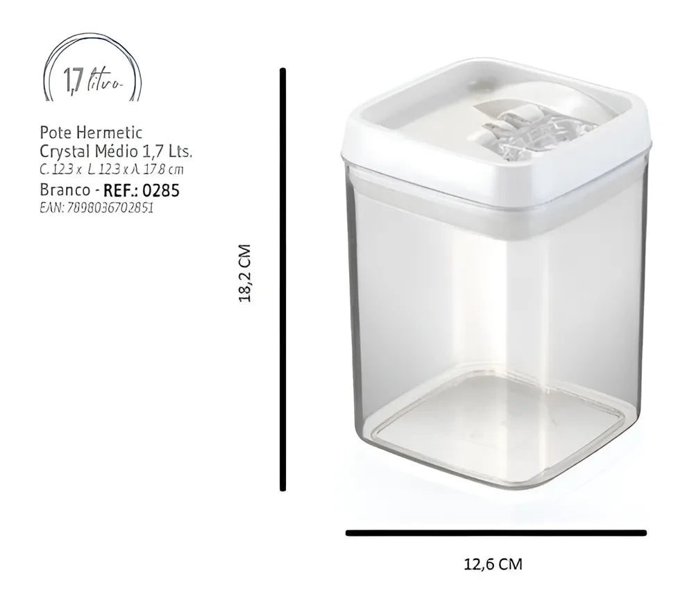 1 Potes 1,7 Litros ( Dimensões : 12,6cm x 12,6cm x 18,2cm)