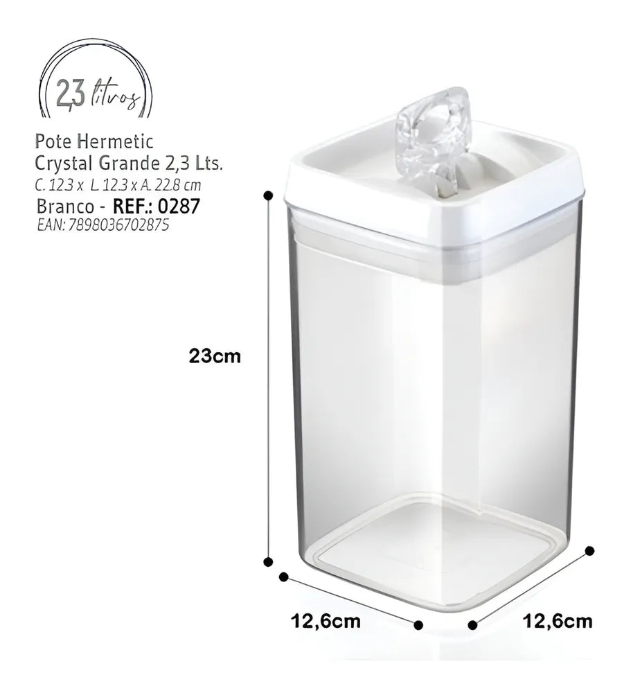1 Pote 2,3 Litros ( Dimensões : 12,6cm x 12,6cm x 23cm)