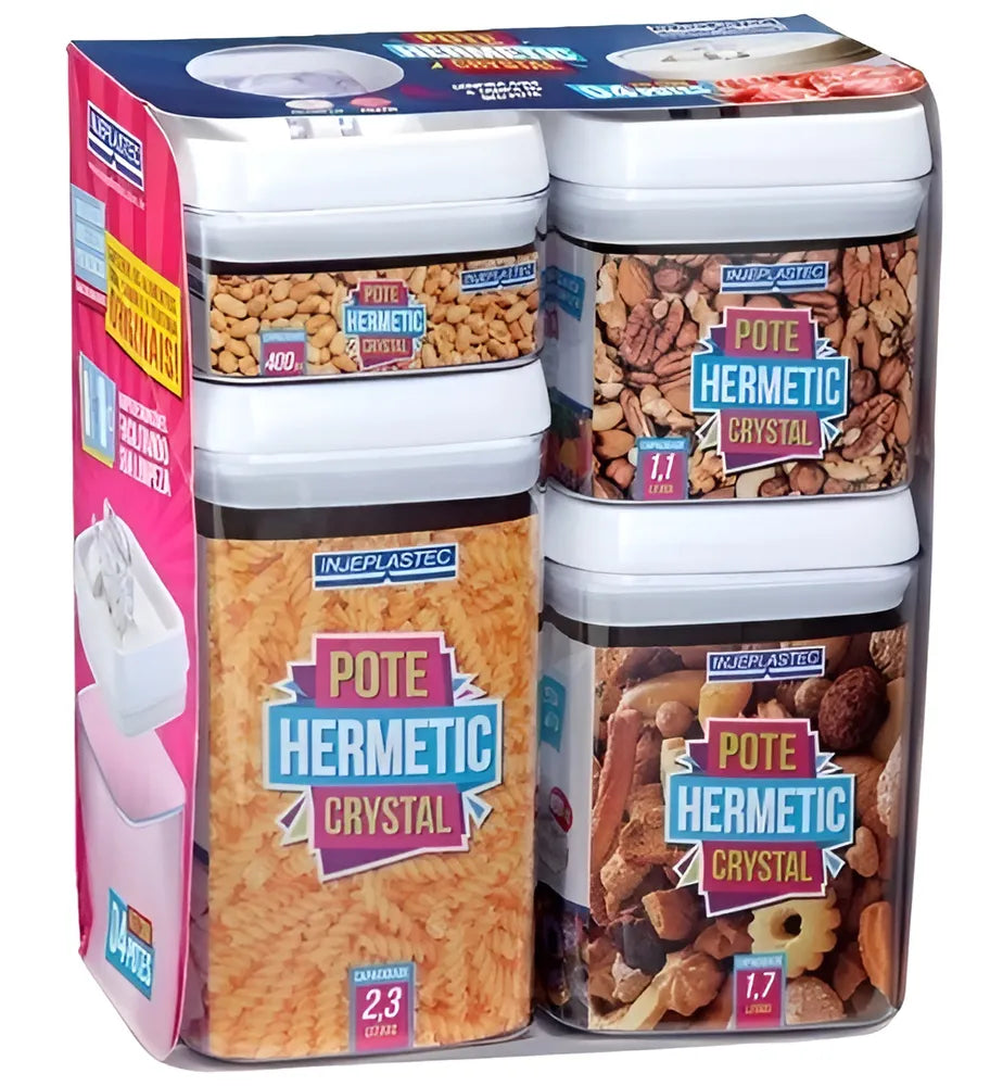 Kit 4 Potes Herméticos Quadrados Acrílico