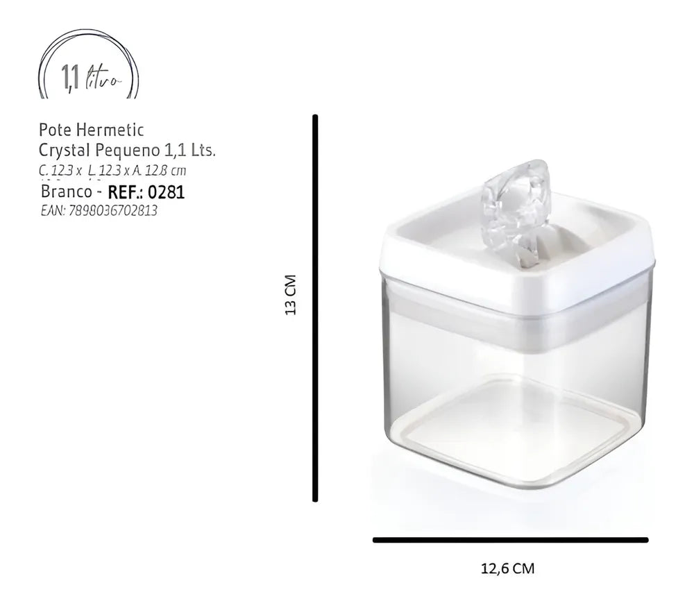 1 Pote 1,1 Litros ( Dimensões : 12,6cm x 12,6cm x 13cm)