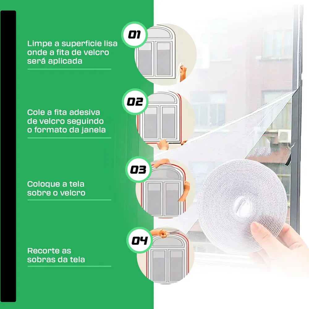 - Malha de 1,5mm, facilmente removível, com fita adesiva para fixação em toda borda da tela.