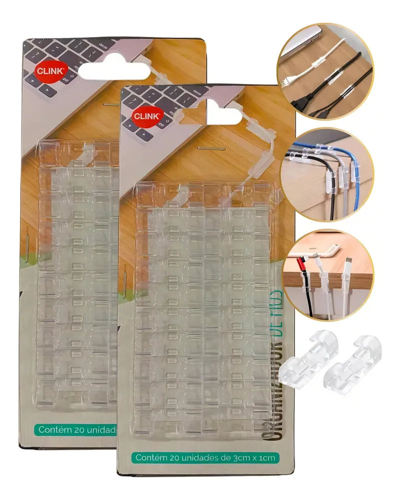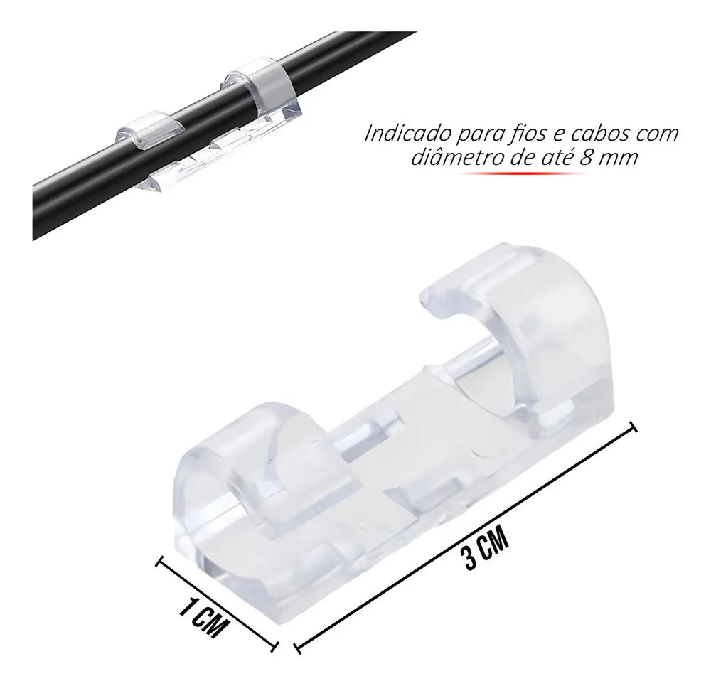 O clip é ótimo. Comprei o transparente. É pequeno e fica bem discreto. A cola da fita que vem junto não é muito forte, então, para cabos levemente mais grossos e mais pesados, pode ser que a fixação não fique tão boa e precise de reforço. A parte boa é que, se você precisar retirar, dificilmente vai danificar superfícies. Para cabos mais leves, tomadas de tv, atende super bem.