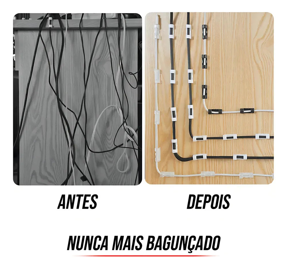 Este organizador de fios é feito de material durável e resistente, garantindo uma longa vida útil e segurança para os seus cabos. Seu design discreto e elegante faz com que ele se adapte perfeitamente à decoração de qualquer ambiente, sem chamar a atenção. Além disso, o clip é fácil de remover e não deixa resíduos pegajosos ou marcas na superfície em que foi aplicado.