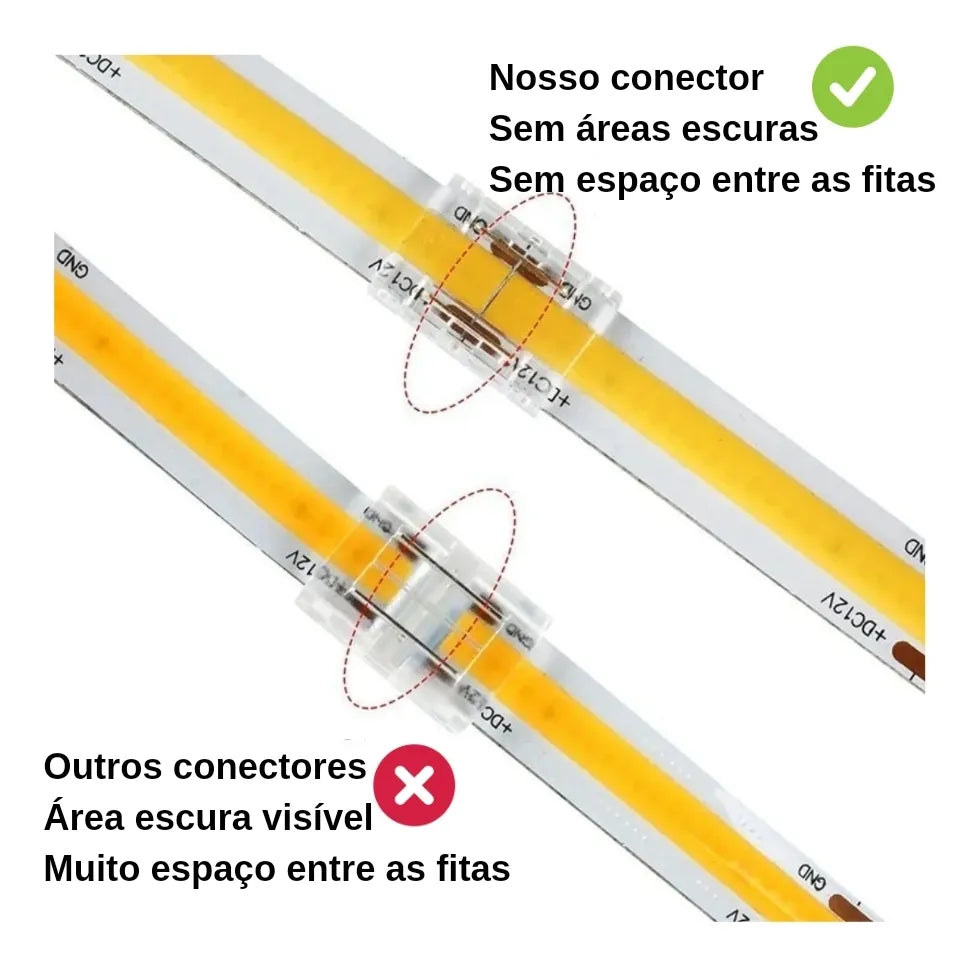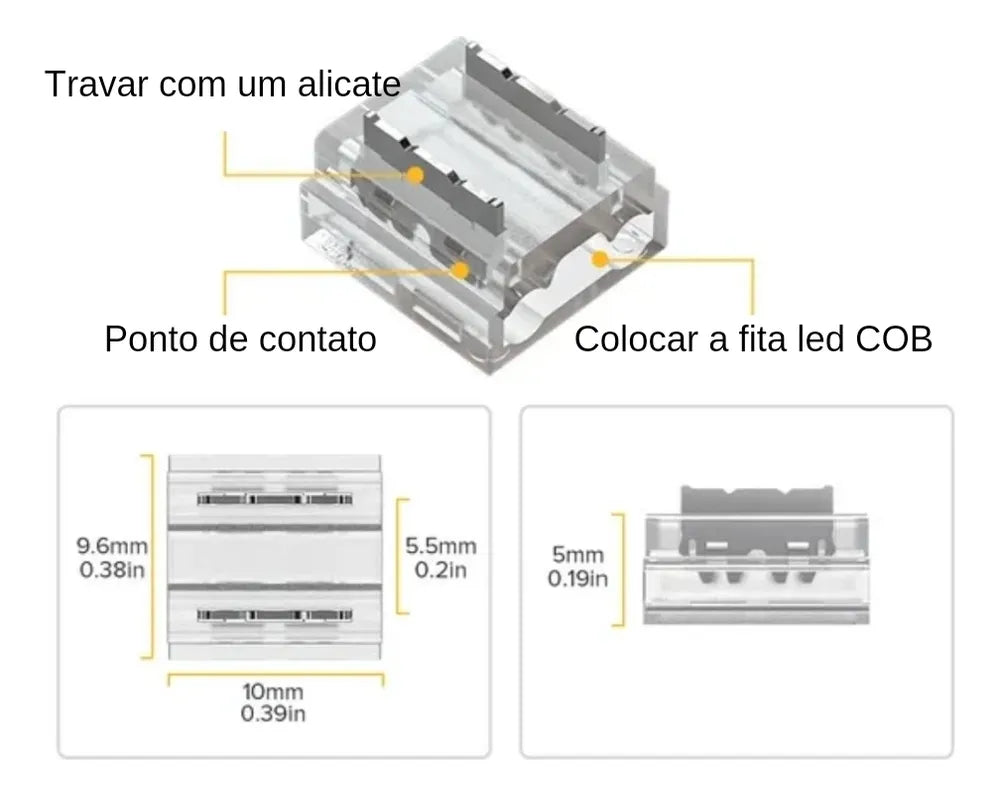 Kit 5 Conector Emenda Fita Led Cob 2 Vias Monocor 8mm Tensão de operação