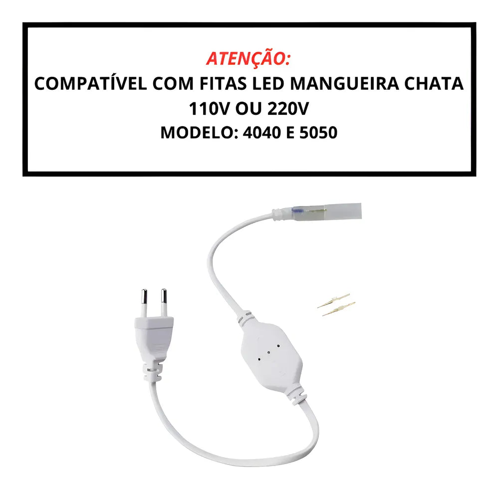 Este modelo serve apenas para mangueira luminosa de led chata de 02 fios, não funciona em fita led, nem mangueira redonda.