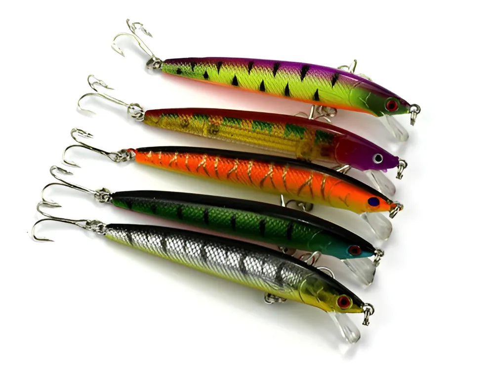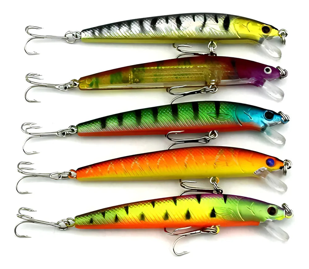 * 01 KIT CONTENDO 05 ISCAS ARTIFICIAIS IMPORTADAS MEIA ÁGUA de 9,5 cms e 8,5 gramas (CORES CONFORME A FOTO)