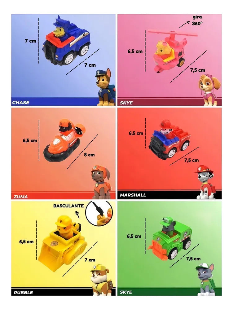 Com o Marshal, Rocky, Zuma, Chase, Rubble, Skye do Patrulha Canina da linha Carrinhos de Fricção da Patrol Dogs as horas de diversão são garantidas. Você poderá brincar com eles seguindo suas histórias ou colecionar pelo tempo que quiser.
