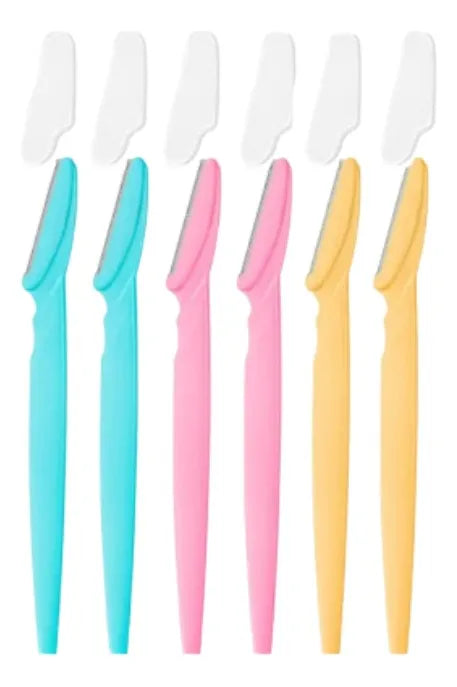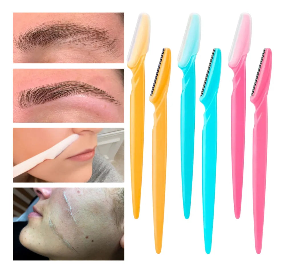 Kit 6 Navalhas para Sobrancelha e Rosto – Lâminas em Aço Inoxidável com Cabo Antiderrapante, Precisão para Depilação Facial, Buço e Corpo