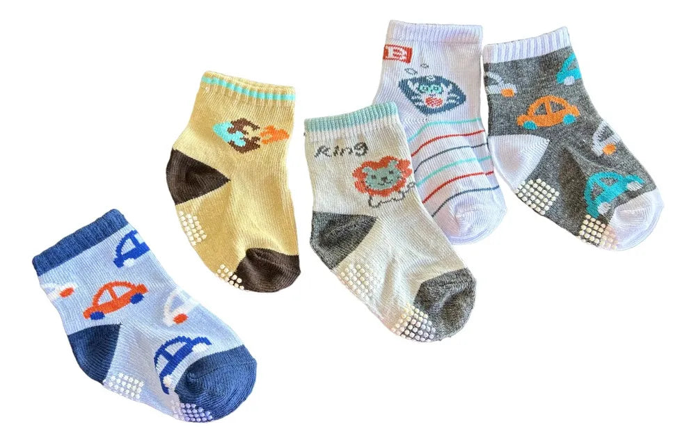 Variadas 0 a 6 Meses Com Antiderrapante - Kit com 6 Pares de Meias Masculino Infantil