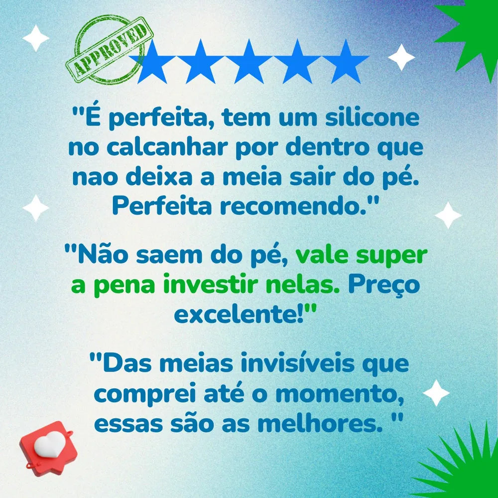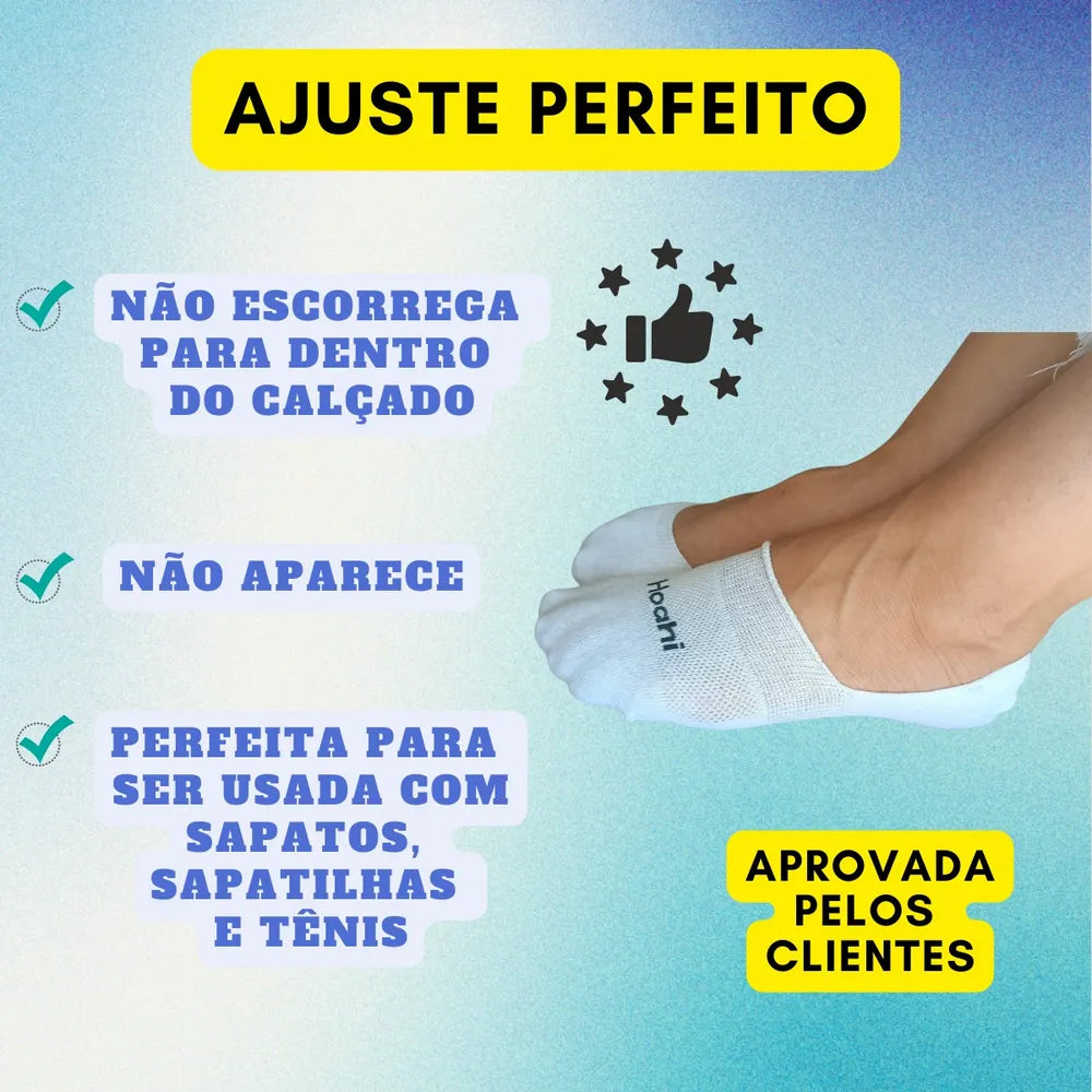 Esse KIT DE 6 PARES de meias sapatilhas, possui calcanhar verdadeiro com faixas de silicone que proporcionam melhor ajuste aos pés e evitam que a meia escape para dentro do calçado. A parte superior é mais leve e conta com uma tecnologia para maior conforto térmico que permite que os pés respirem, ajudando a remover a umidade e o suor.