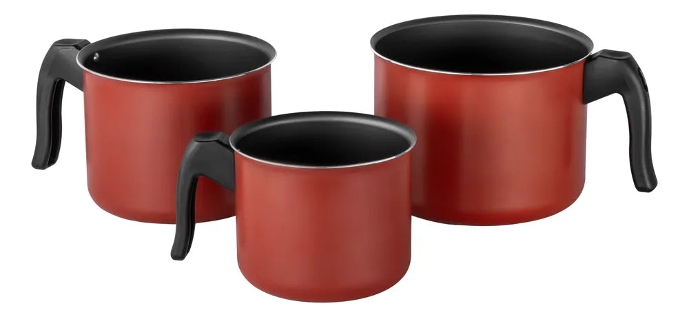 Vermelho - Descubra a praticidade e eficiência do Kit Canecão Fervedor Leiteira da marca Cozillar. Com três unidades de fervedores de alumínio antiaderente, ideal para preparar suas bebidas quentes e receitas de forma rápida e uniforme.