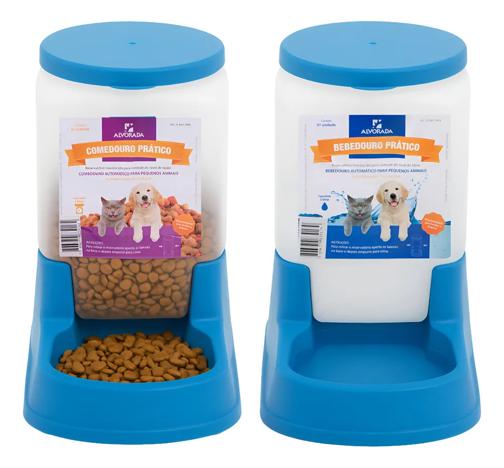 Com este kit, você nunca mais terá que se preocupar se a quantidade de ração e água que você colocou para o seu pet antes de sair foi o suficiente. Ele dispensa o alimento e água de forma automática conforme o pet beber/comer!