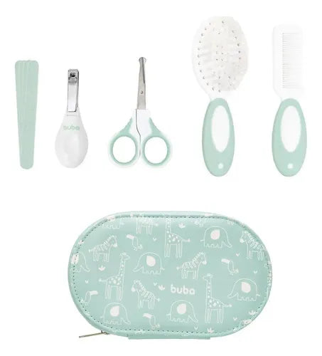 O Kit Cuidados da Buba foi desenvolvido para cuidar com delicadeza e segurança dos pequenos. Possui tesoura, com pontas arredondadas, cortador de unhas, pente, escova, lixas e um estojo super prático para armazenar e transportar.