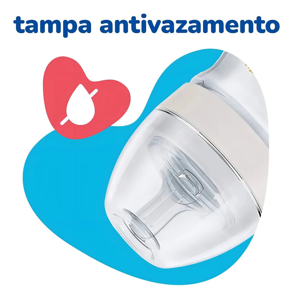 - Mamadeira 240ml (6+ Meses): possui o frasco mais largo para facilitar a higienização, tampa com sistema antivazamento e e pode ser encaixada na parte de baixo da mamadeira, evitando perda.