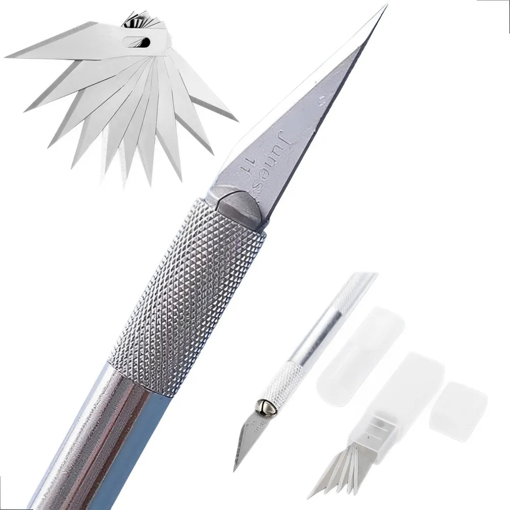 O Kit Estilete Bisturi Profissional oferece precisão e durabilidade para cortes detalhados em diversos materiais, ideal para artesanatos, aeromodelismo, e trabalhos que exigem precisão. Composto por um estilete ergonômico e lâminas de aço de alta resistência, é versátil e seguro para uso prolongado. Esse kit é indicado tanto para profissionais quanto para amadores que buscam acabamento impecável em seus projetos. A troca de lâminas é fácil, proporcionando praticidade e eficiência para suas necessidades de corte.