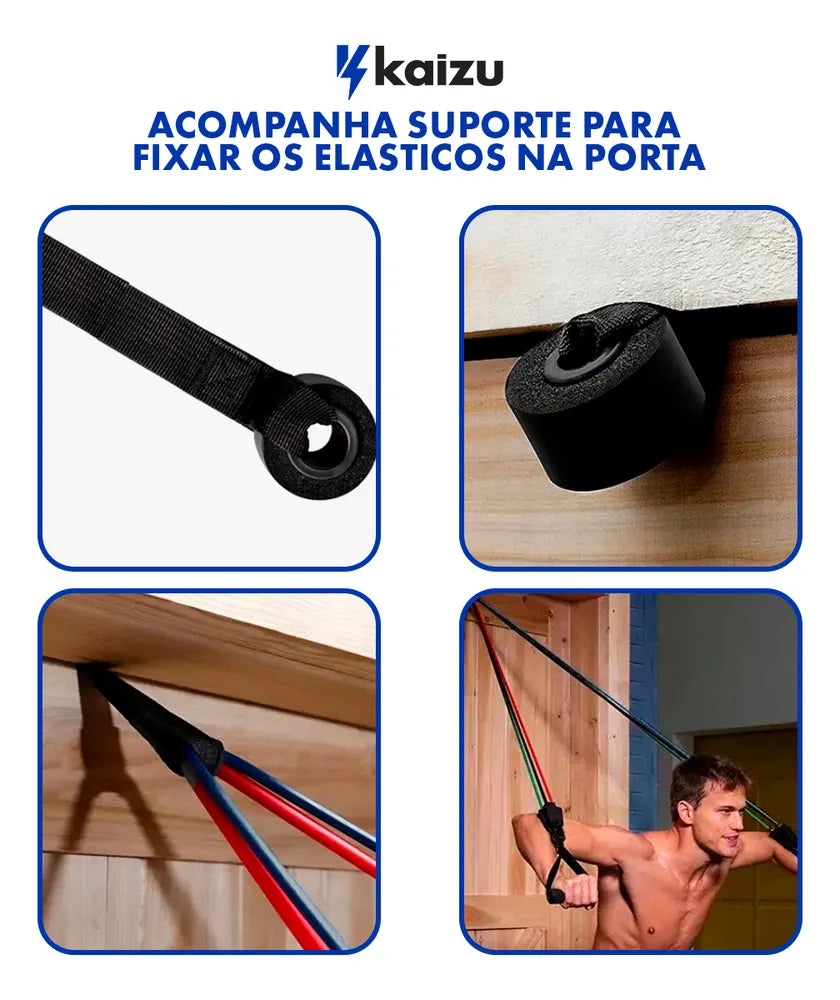 - Resistências Variadas: Inclui elásticos com diferentes níveis de resistência (leve, médio, forte), adaptando-se a todos os níveis de condicionamento físico.