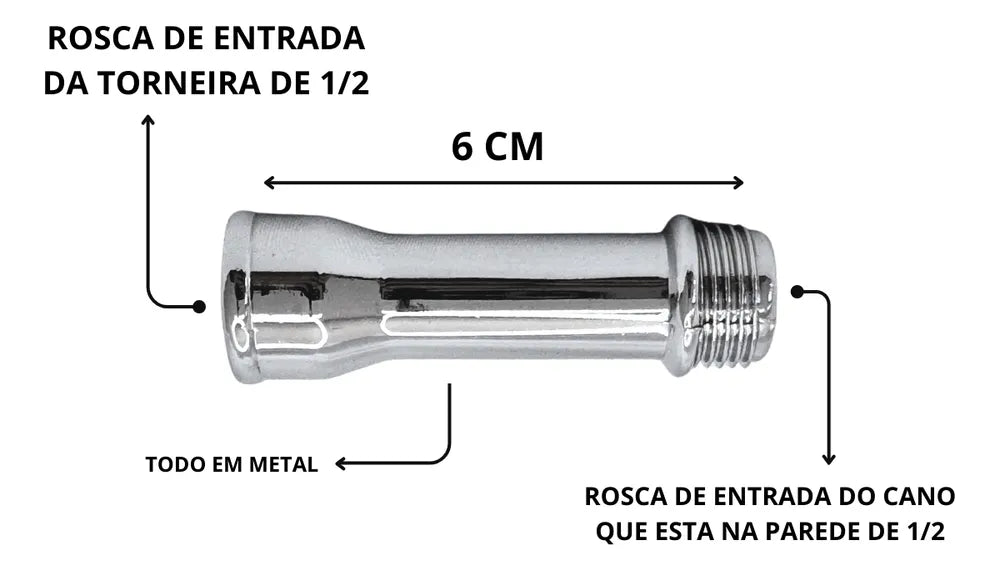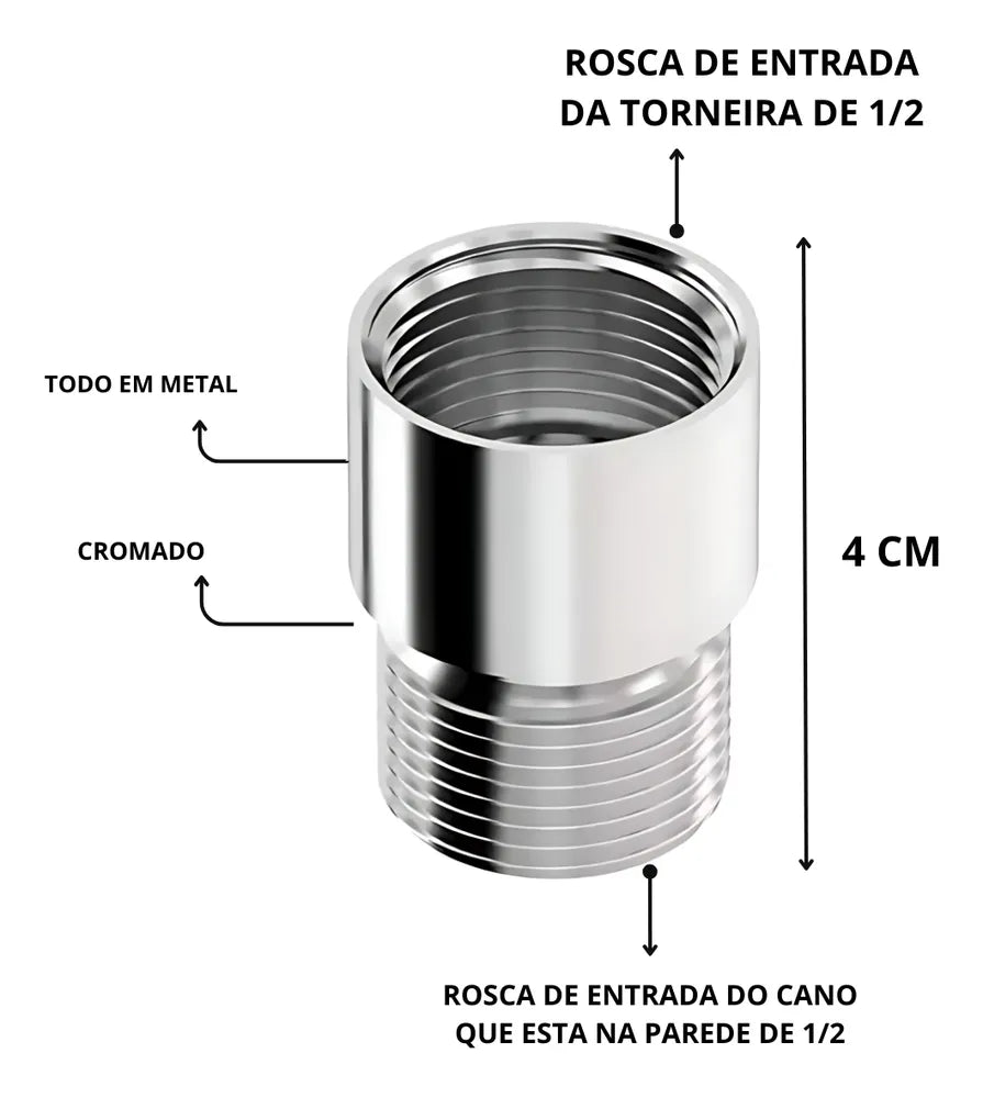 Kit Extensor Prolongador para Torneira 1/2” – Metal Cromado