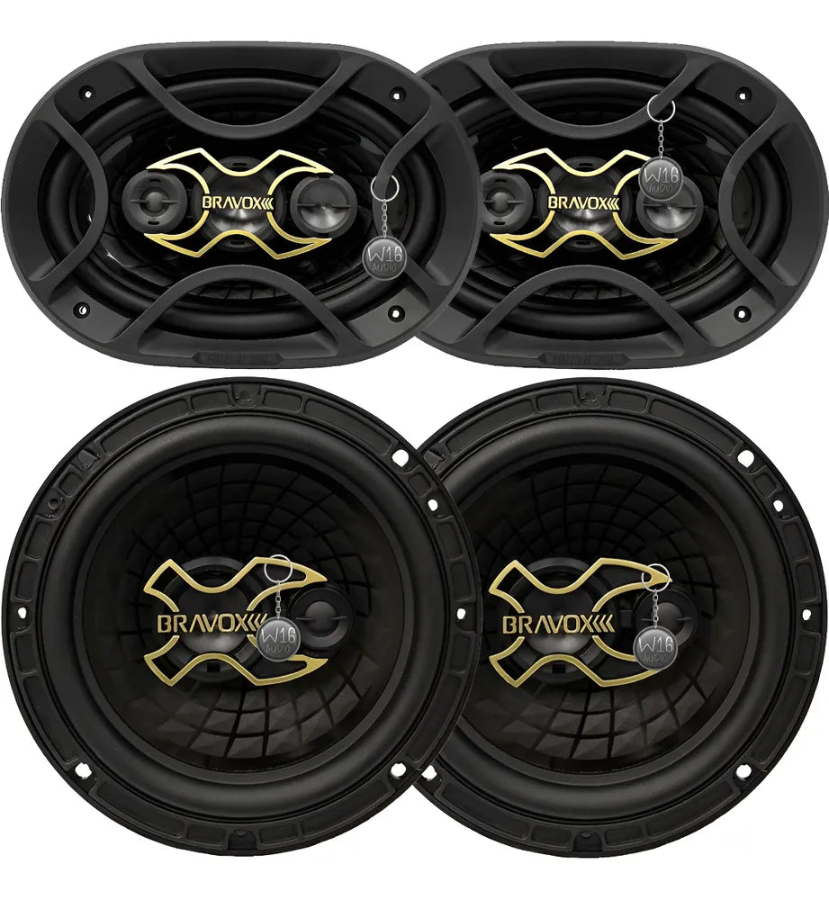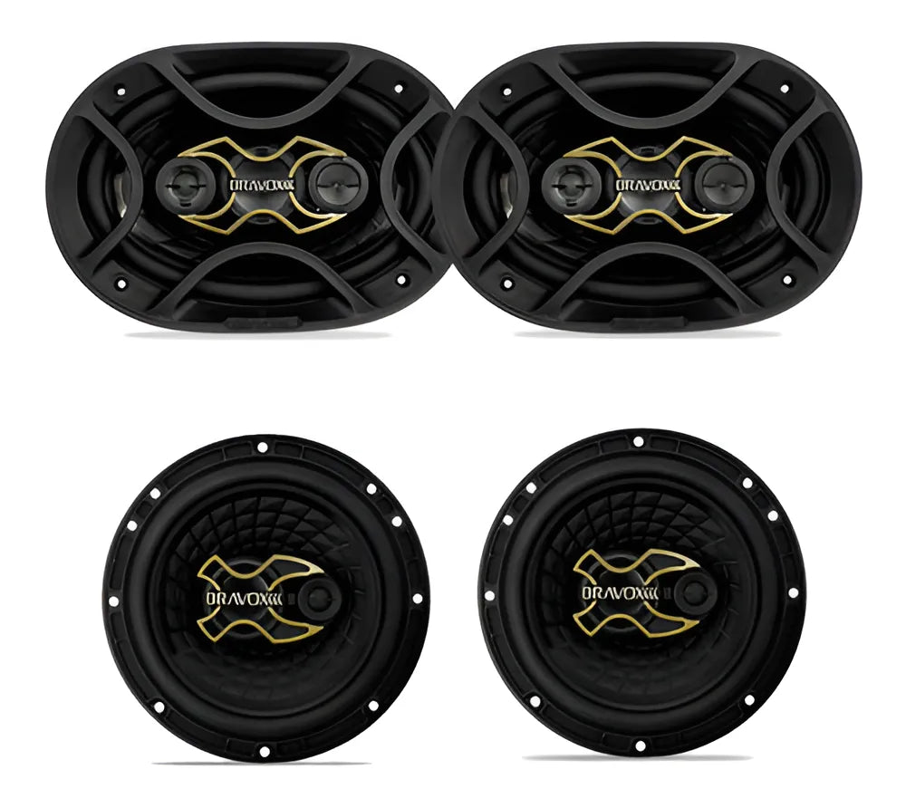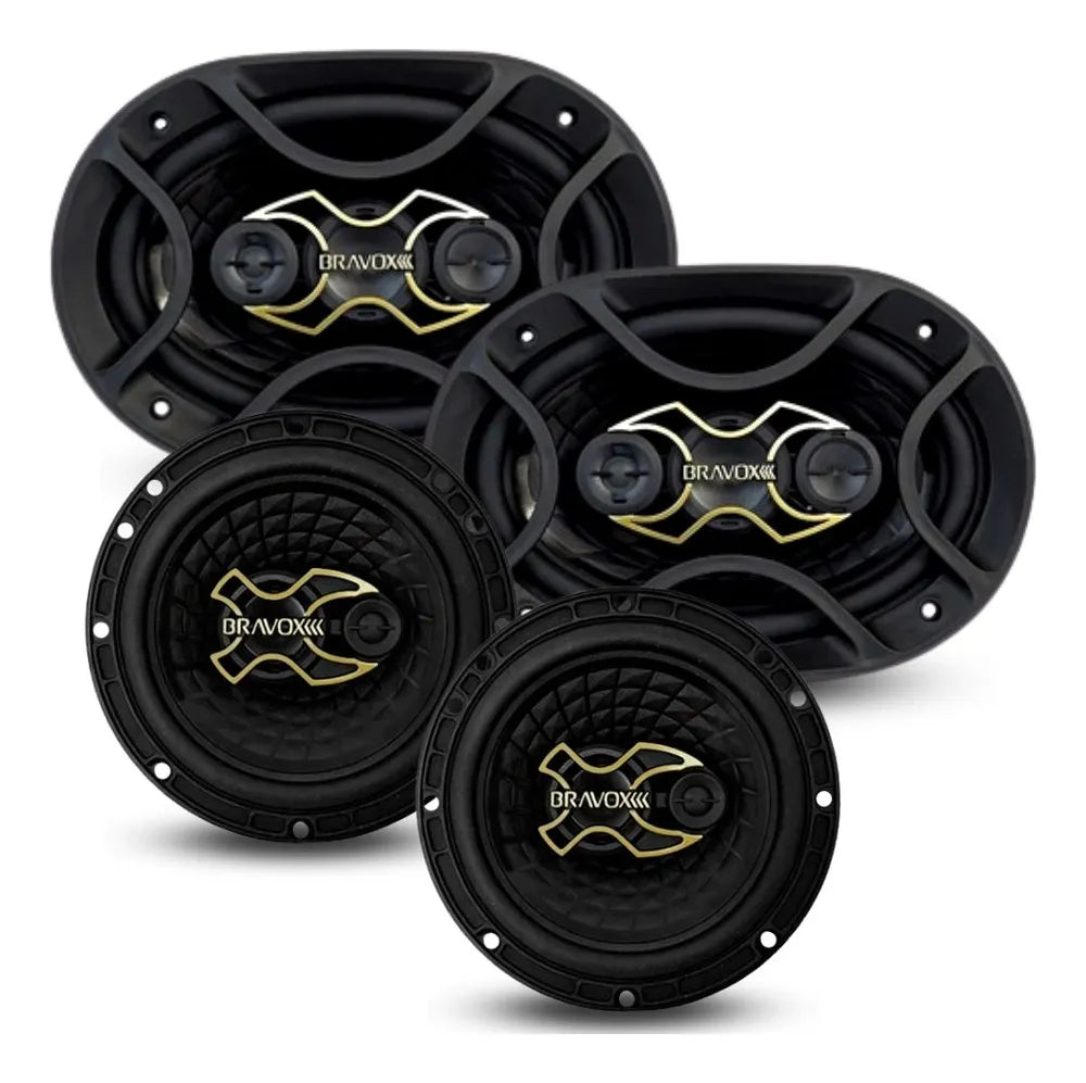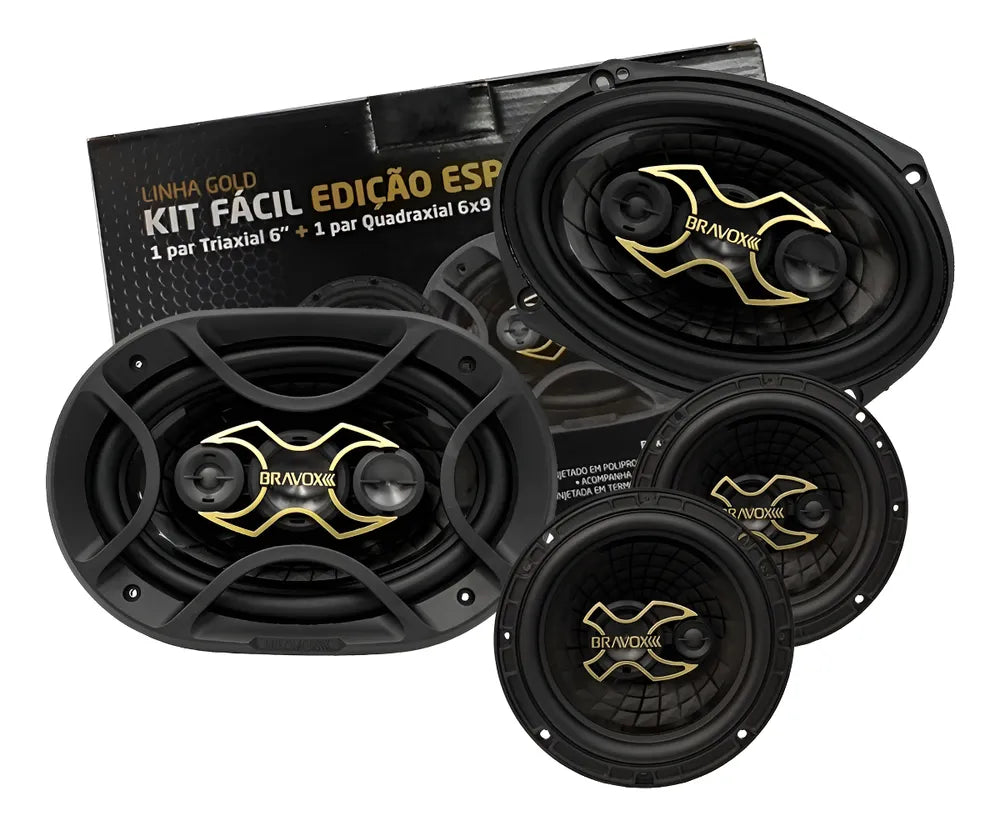 Kit Fácil Alto Falante 6x9 Quadriaxial e 6 Polegadas Triaxial Total 240W RMS Linha Gold - Bravox