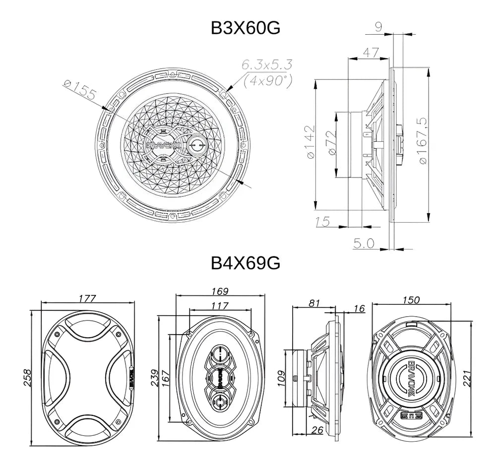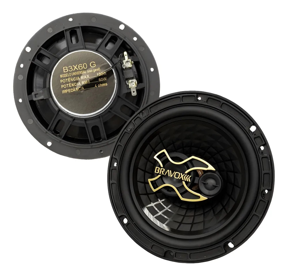 Desenvolvido pela Bravox, empresa nacionalmente conhecida, o alto falante 6x9 e 6 polegadas modelo Triaxial e Quadriaxial, Carcaça Injetada em Termoplástico e Cone injetado em polipropileno, Sensibilidade de 88, garantindo clareza e qualidade de som.