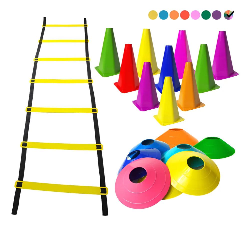 Aprimore seu treinamento com o Kit Funcional Treinamento Agilidade, ideal para quem busca melhorar a performance esportiva. Este kit completo inclui 10 cones, 10 chapéus chinês e uma escada de agilidade de 3 metros, proporcionando uma variedade de exercícios para desenvolver a agilidade e a coordenação. Os cones, feitos de polipropileno, são leves e duráveis, pesando apenas 60g, enquanto os chapéus têm dimensões práticas de 19cm x 5cm e pesam 35g. A escada de agilidade, com 7 degraus, é confeccionada em fita de nylon ultra resistente, garantindo segurança e eficiência durante os treinos. Com um design ajustável, este kit é perfeito para treinos funcionais e pode ser utilizado em diversas modalidades esportivas. A marca Salus Fitness garante a qualidade e a durabilidade dos produtos, tornando este kit uma excelente escolha para quem deseja se destacar no esporte.