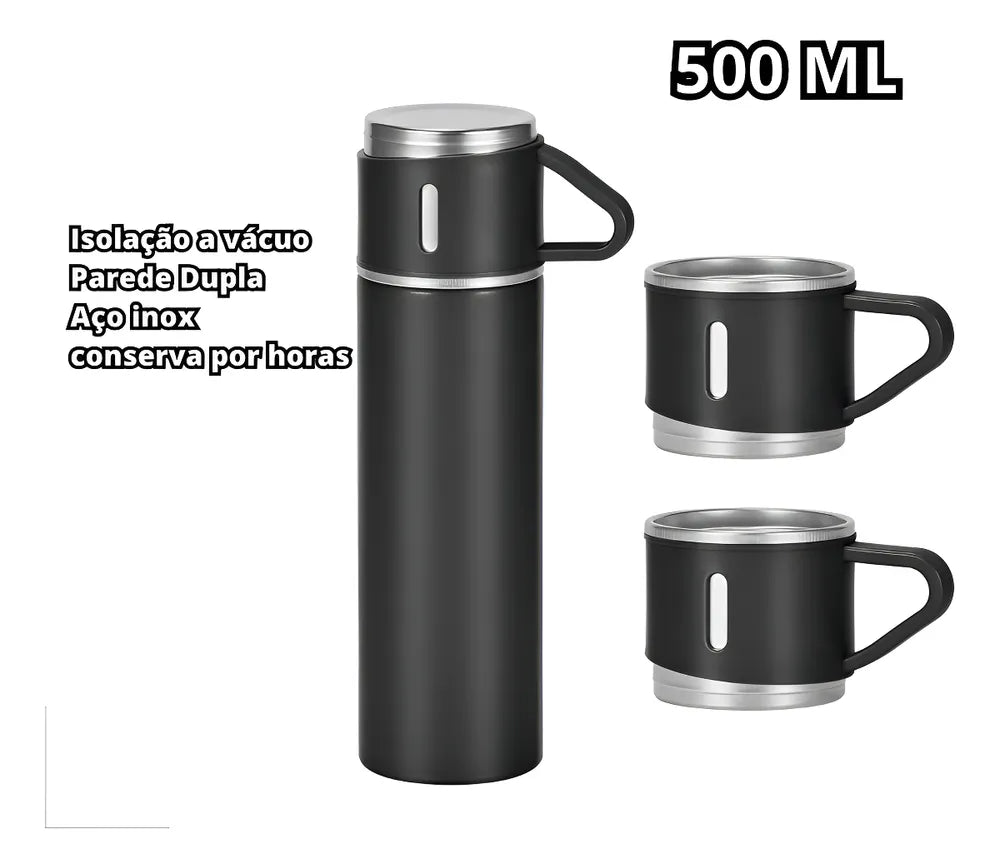 Garrafa Térmica Vacuum Flask Set Inox 500ml + 3 Xícaras