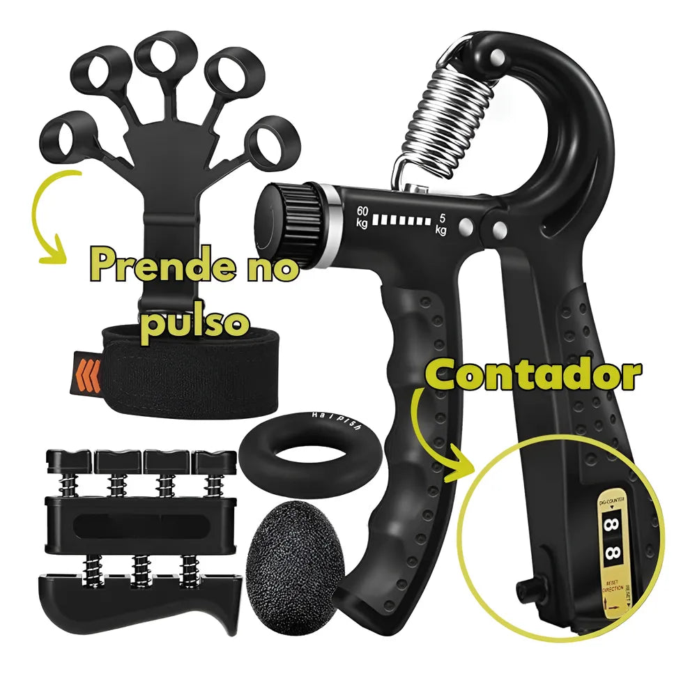 * Kit Completo de Fortalecimento – atua no desenvolvimento de força, pegada e resistência em mãos, dedos e antebraços.