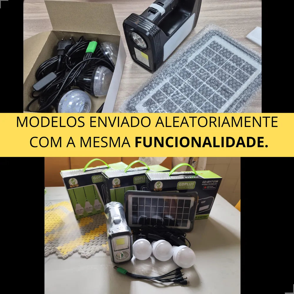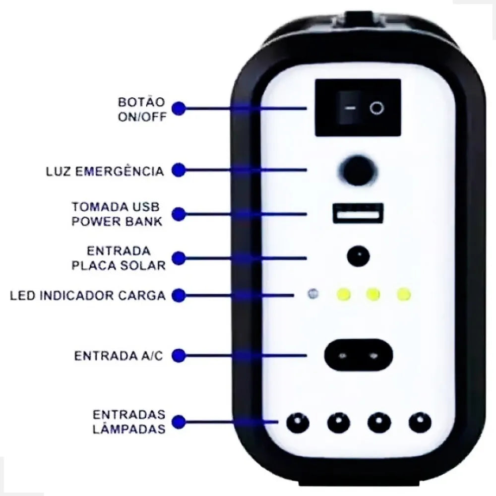 Tenha iluminação confiável e autonomia total com o Kit de Iluminação Solar Portátil para Camping. Projetado para quem busca praticidade e segurança em acampamentos, chácaras, sítios ou locais sem energia elétrica. Com carregamento solar e tomada, você garante luz e energia onde estiver, com tecnologia LED de alta eficiência e longa duração.