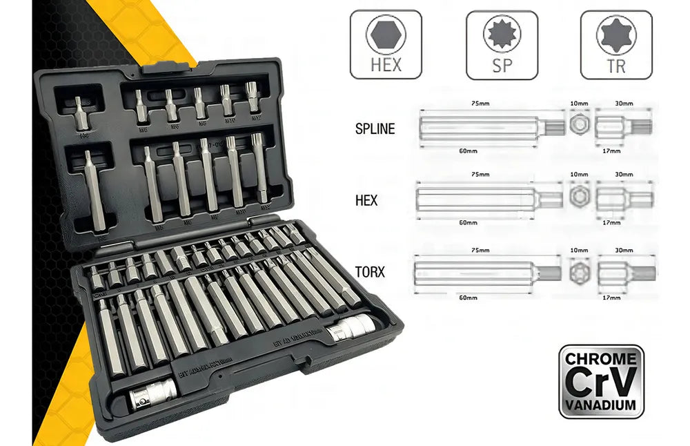 * 5 Bits Spline de 75 mm: M5, M6, M8, M10, M12