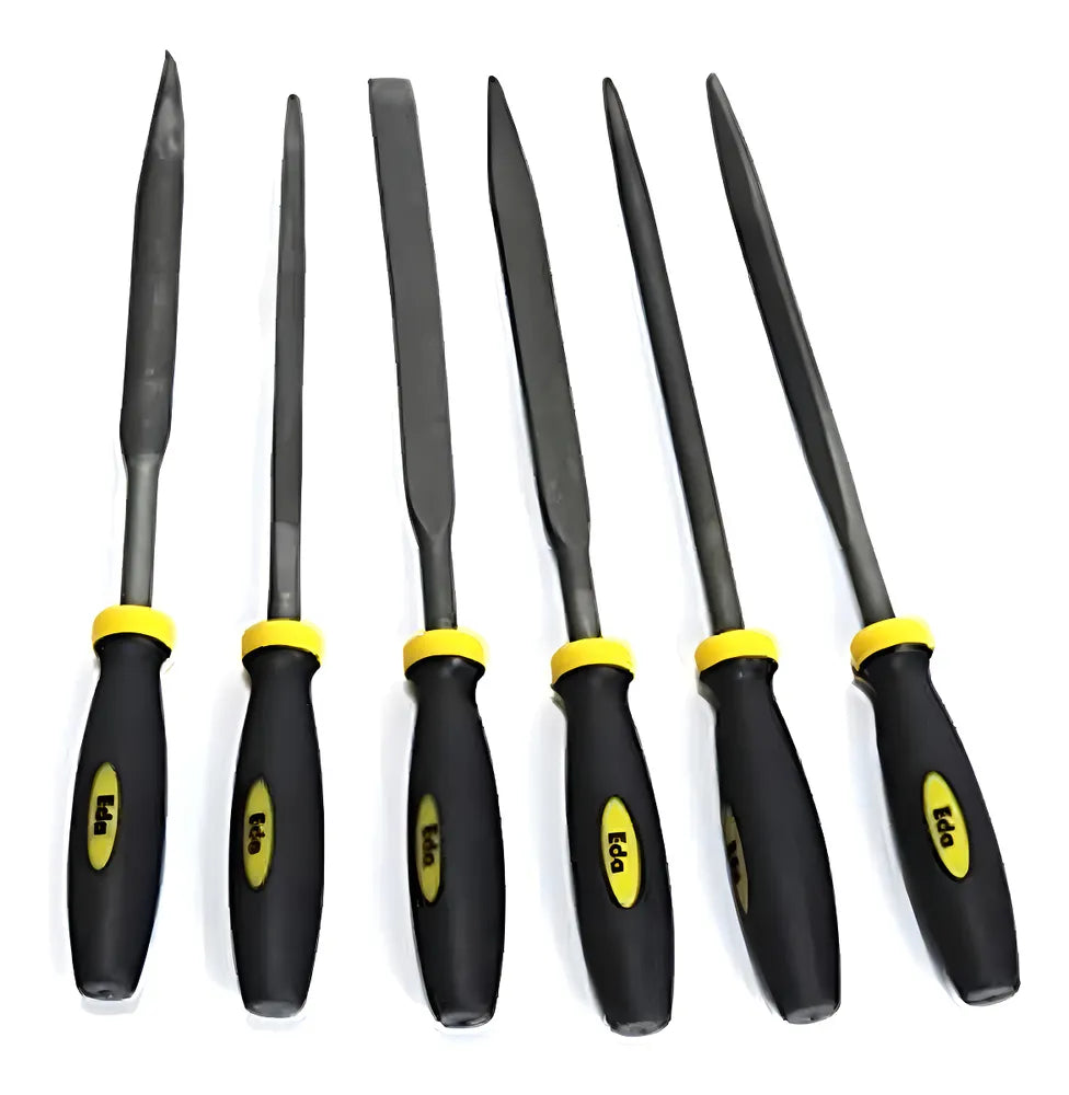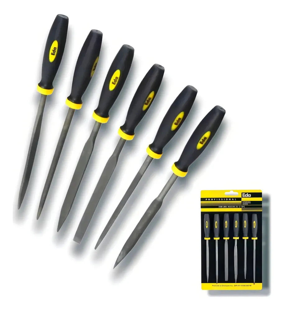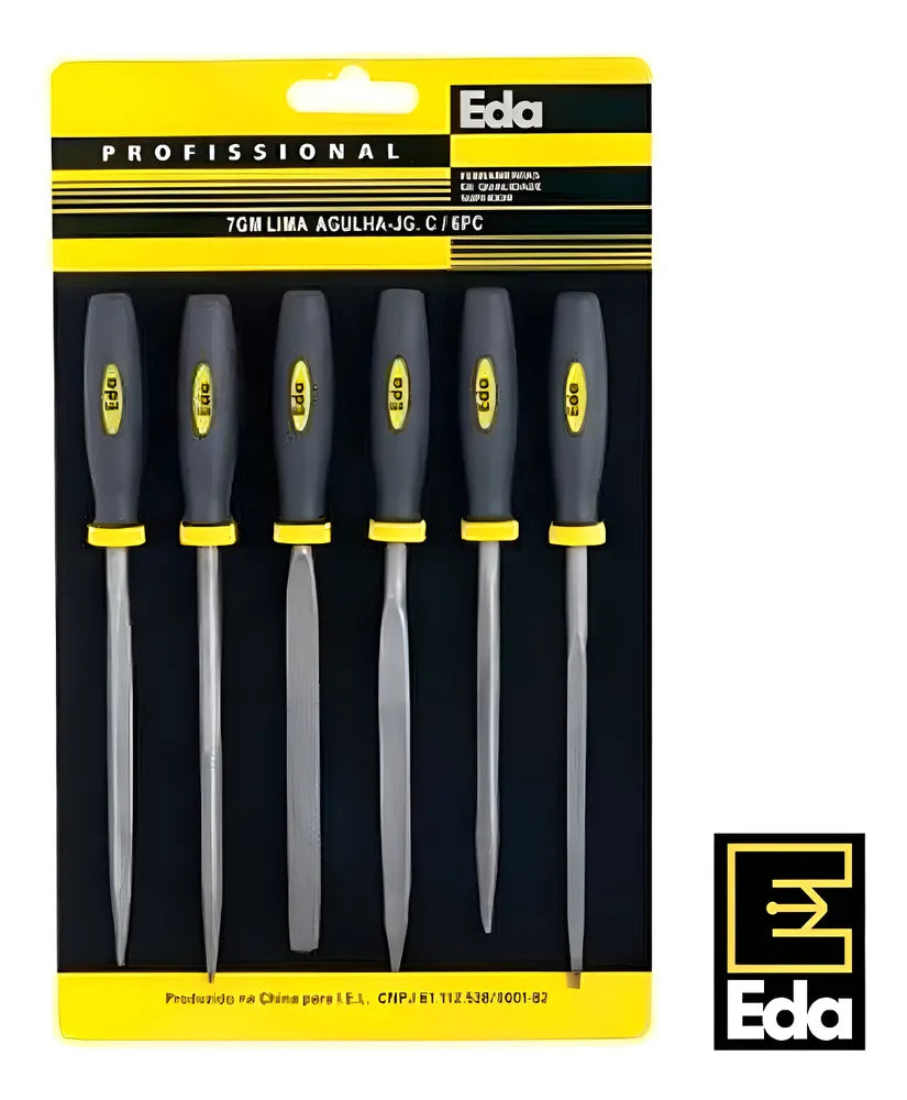 Aproveite a qualidade profissional das limas tipo agulha EDA para realizar seus trabalhos com precisão e eficiência. Compostas por materiais de alta qualidade, como madeira e aço, essas limas são perfeitas para modelar e dar acabamento em diversos materiais. Com o modelo 7GM-1, você terá em mãos uma ferramenta versátil e durável, ideal para profissionais exigentes. O kit conta com 6 unidades, todas com cabo para facilitar o manuseio. Não perca a oportunidade de adquirir essas limas de alta qualidade e elevar o nível dos seus trabalhos.