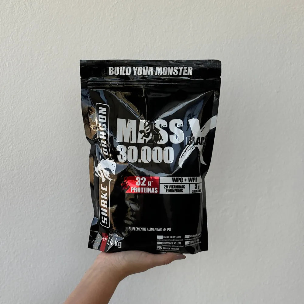 A Anabolic Mass 30000 proporciona ganho de massa muscular, composta por Creatina alemã, Waxy Maize, Whey Protein Concentrado (WPC), Whey Protein Isolado, Colágeno Hidrolisado, Caseína Micellar, Glutamina Peptídeo, 26 vitaminas e minerais.