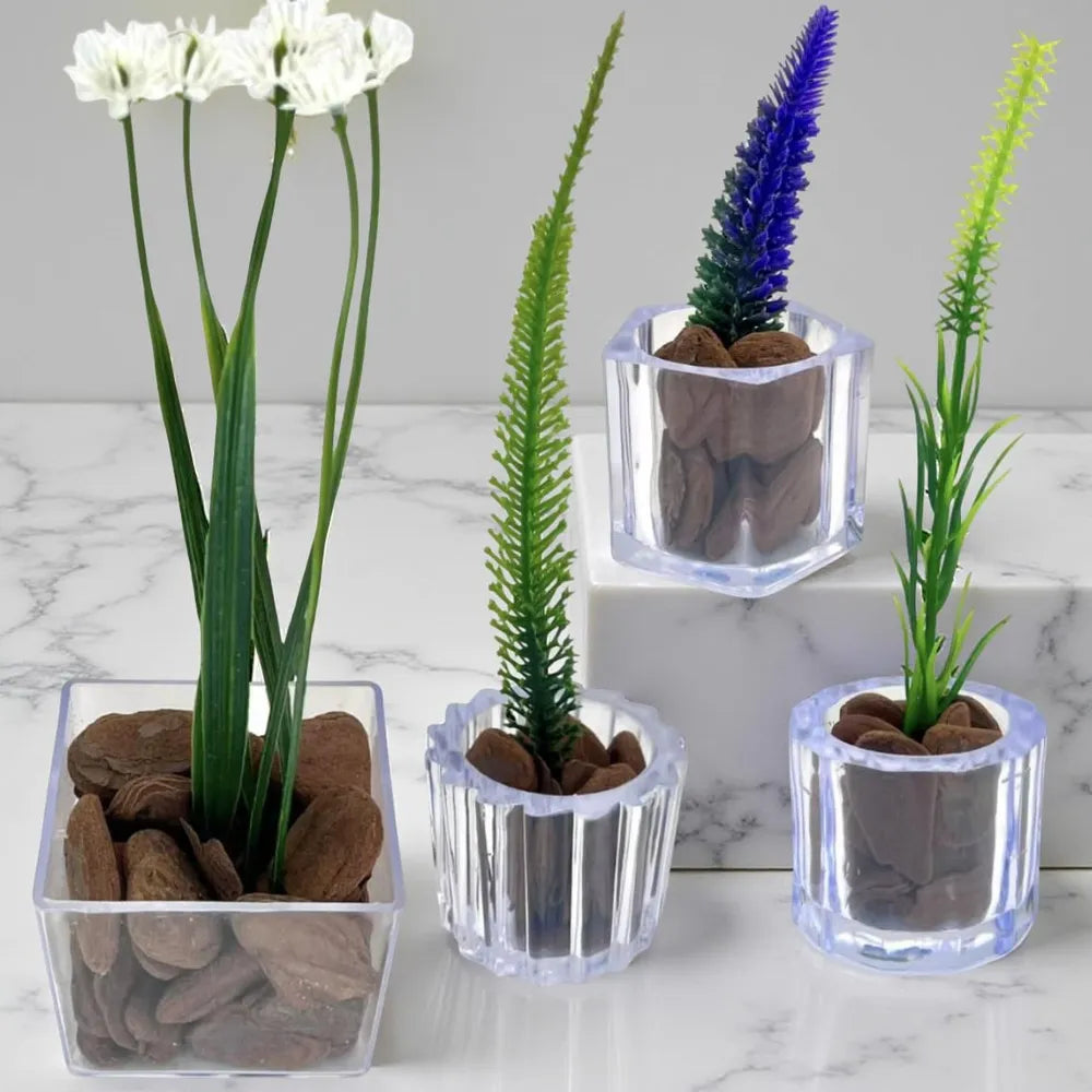 Estilo e Versatilidade: Os vasinhos apresentam um acabamento contemporâneo que se adapta a diversos estilos de decoração, seja em escritórios, salas de estar, cozinhas ou até mesmo em ambientes externos cobertos.