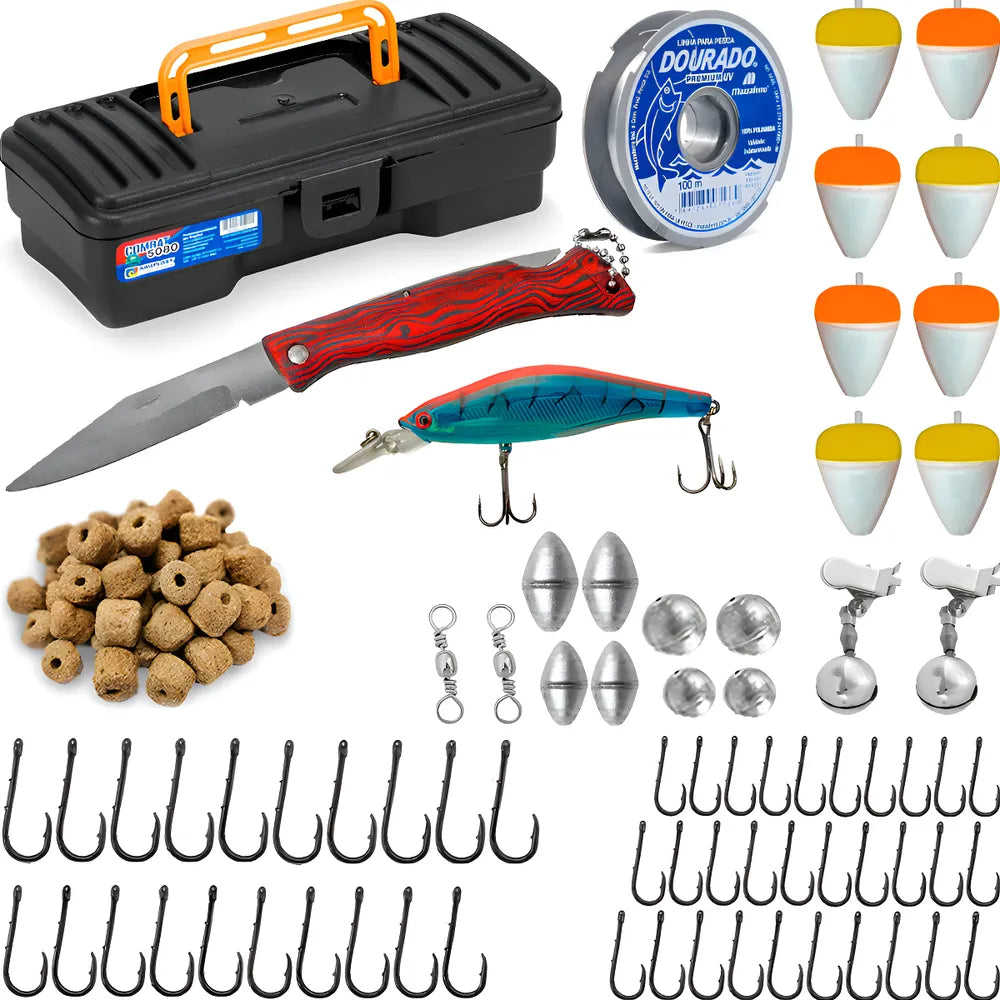 Kit Pesca Completo Anzol Boia Chumbada Sino Sinete Girador
