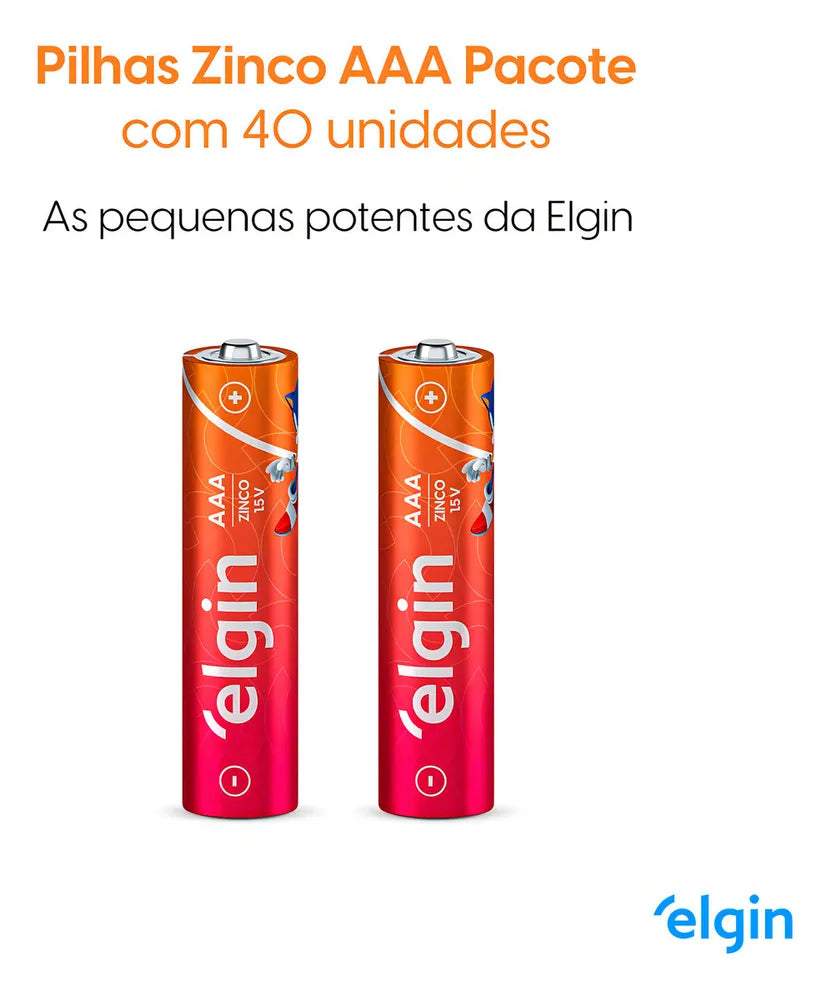 Essa embalagem conta com 40 unidades de pilhas para maior tempo de uso. Um dos diferencias das pilhas Elgin é que NÃO AGRIDEM O MEIO AMBIENTE, porque têm 0% de metais pesados em sua composição.