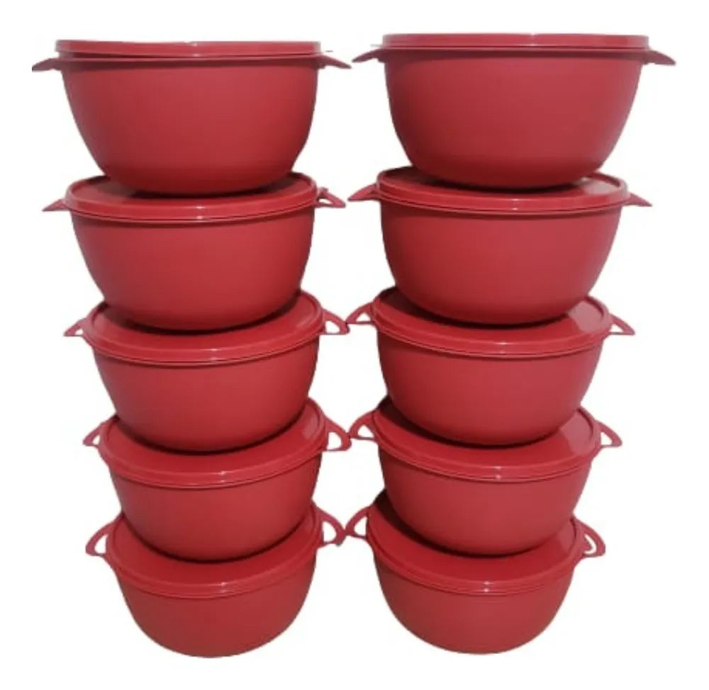 Vermelho - Kit com 10 potes 1lt tamanho médio ideal para armazenamento de pequenas porções
