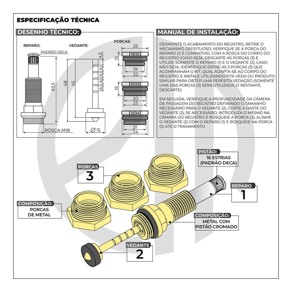 Kit Reparo Salva Registro Pressão Chuveiro 7 X 1 Universal Modelo C-40
