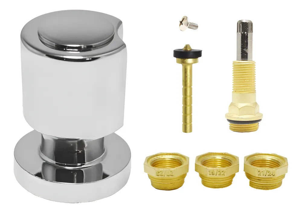 Kit Reparo Salva Registro Pressão Chuveiro 7 X 1 Universal para as principais marcas do mercado , é ideal para reparar seu registro de forma mais econômica e prática, ele acompanha o reparo para registro e um conjunto de buchas totalizando 7 medidas de rosca (03 Buchas SOS N° 19,20,21,22,23 e 24), além disso acompanha vedante, guarnição de borracha e parafuso para instalação.