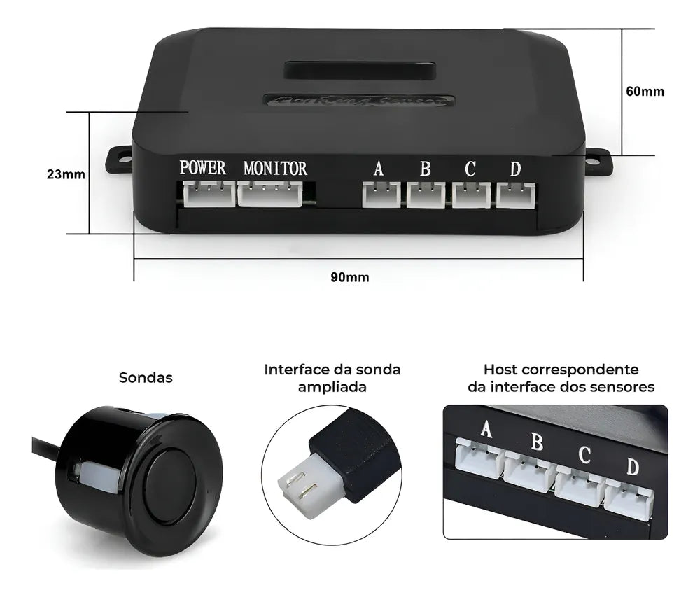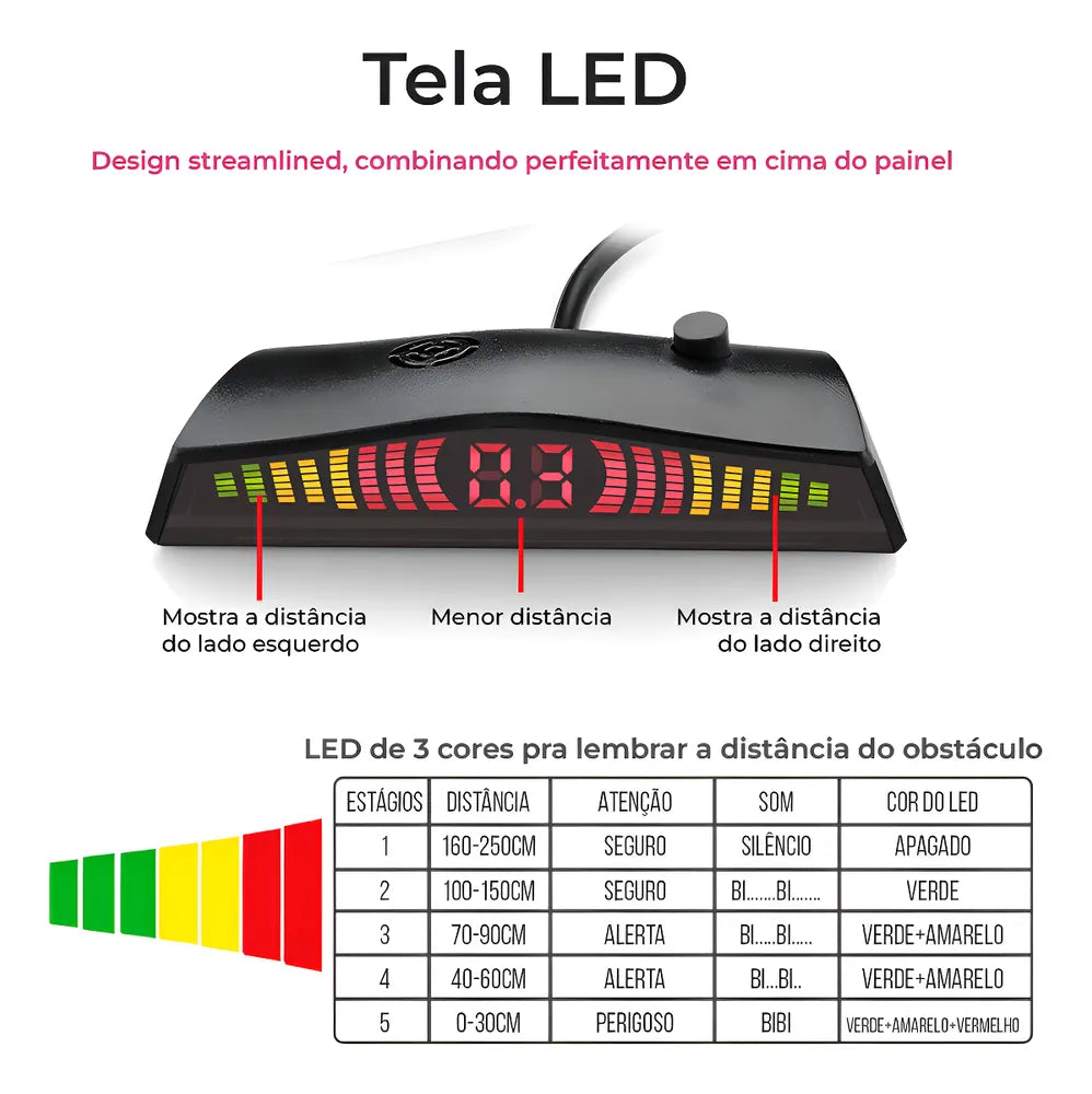 O Sensor de estacionamento é um acessório de segurança ideal para fazer manobras, estacionar, fazer balisa e evitar batidas e riscos na traseira do veículo.