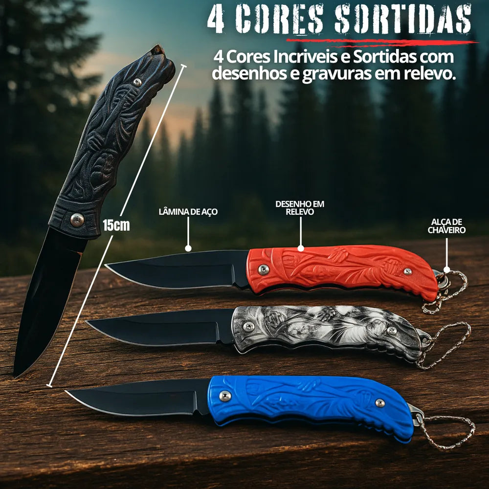 Sim, o canivete tático possui sistema de trava que garante segurança durante o uso. Ele é dobrável, compacto e fácil de transportar.