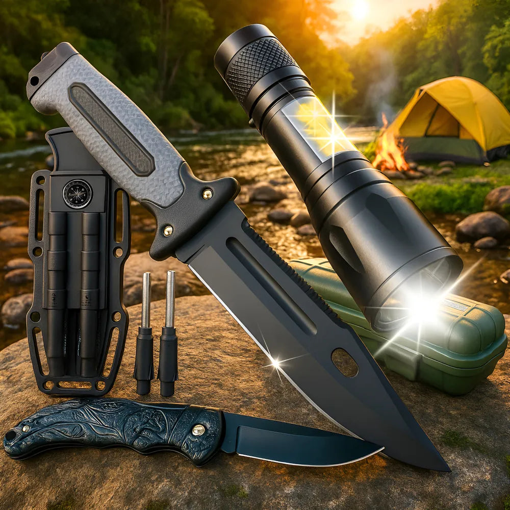 Tenha em mãos um kit de sobrevivência tático completo para enfrentar qualquer situação. Este conjunto é ideal para camping, trilhas, expedições, pesca, caça, uso militar e emergências. Composto por faca tática militar, canivete dobrável com design dragão, lanterna LED de alto alcance e pederneira para acendimento de fogo, este kit oferece funcionalidade, resistência e praticidade em qualquer ambiente.