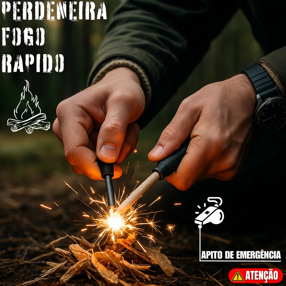 A pederneira de faísca rápida permite acender fogo com facilidade, sendo indispensável em acampamentos ou locais isolados. É uma ferramenta essencial para quem pratica bushcraft, sobrevivência ou trekking em regiões remotas.