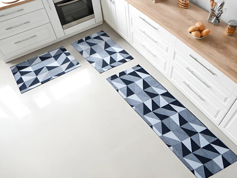 Este conjunto de passadeira e tapetes Jacquard da GMRM Decor possui um design geométrico contemporâneo e elegante. A base emborrachada proporciona maior segurança para você e sua família. É ideal para cozinha, salas, quartos, escritório, proporcionando maior sensação de aconchego ao ambiente.