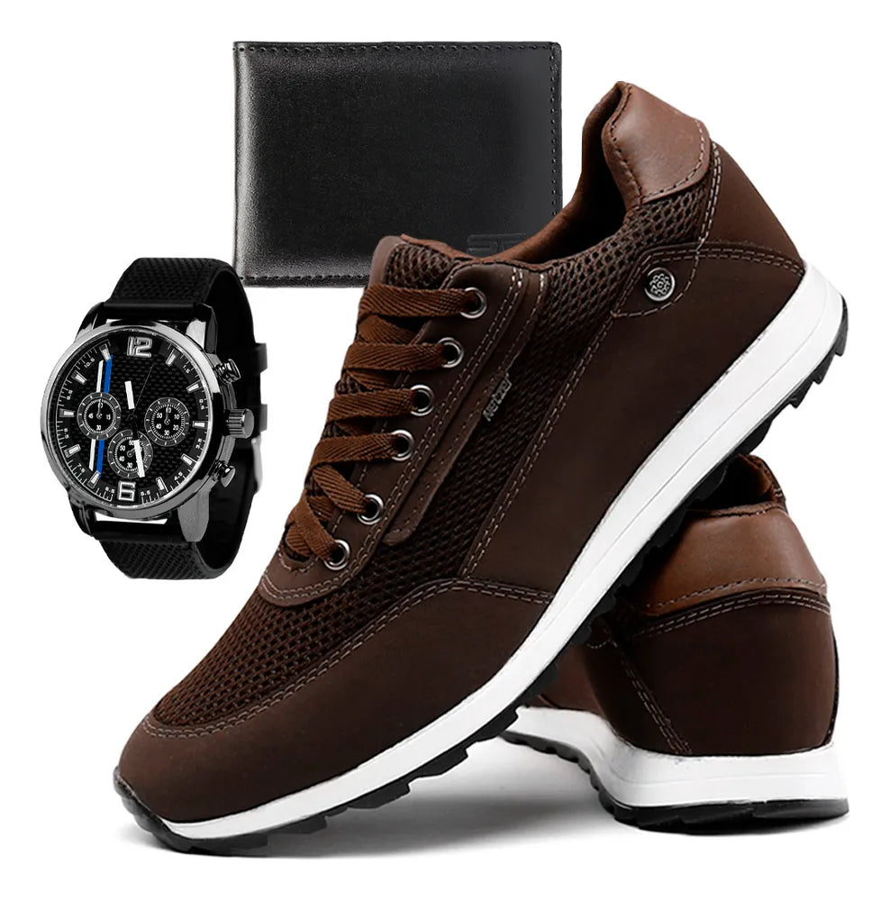Preto 44 BR - Kit composto por um par de Tênis, um relógio e uma carteira conforme especificado suas características a seguir.