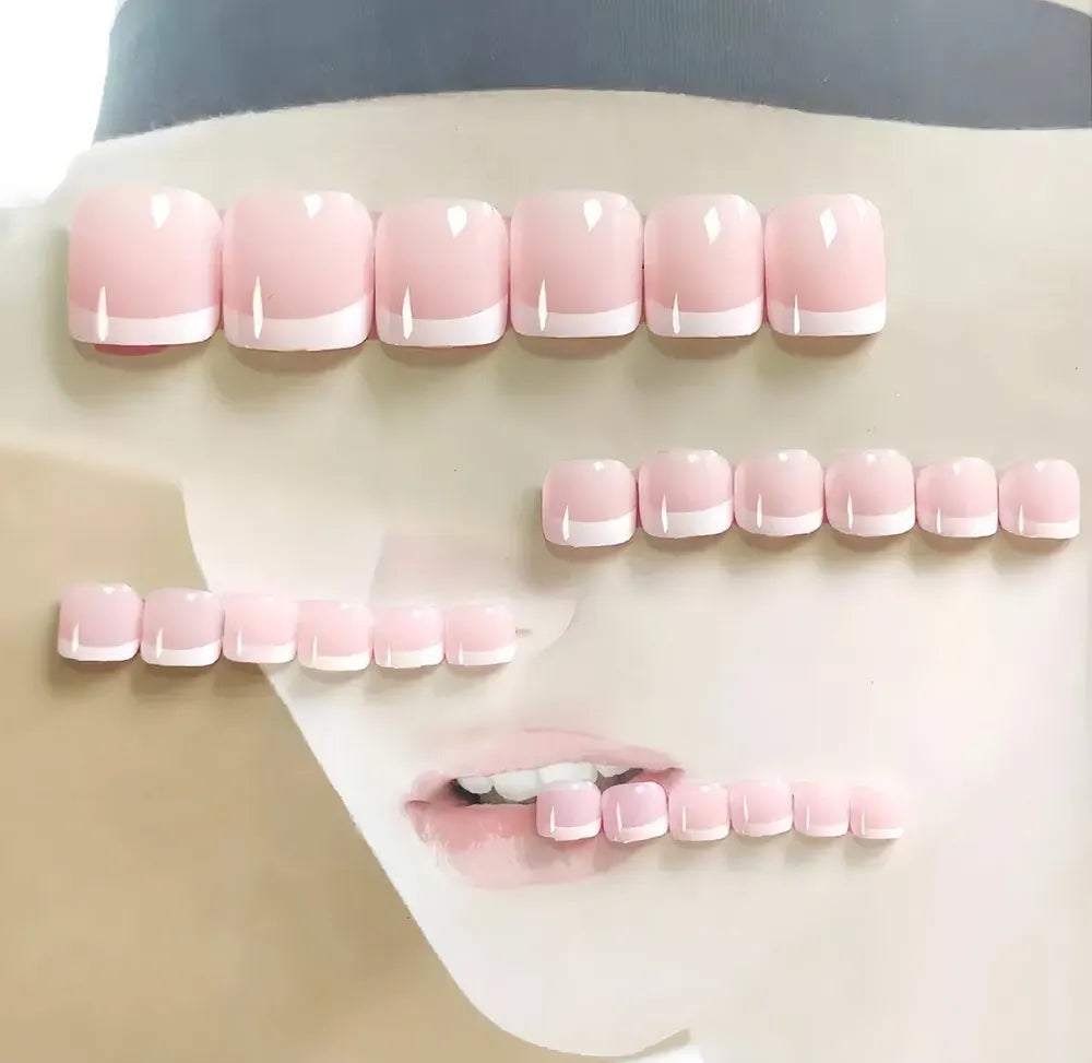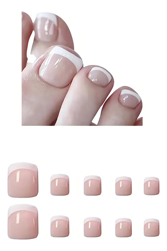 KIT DE UNHA PARA O PÉ POSTIÇA FRANCESINHA COM 28 UNIDADES