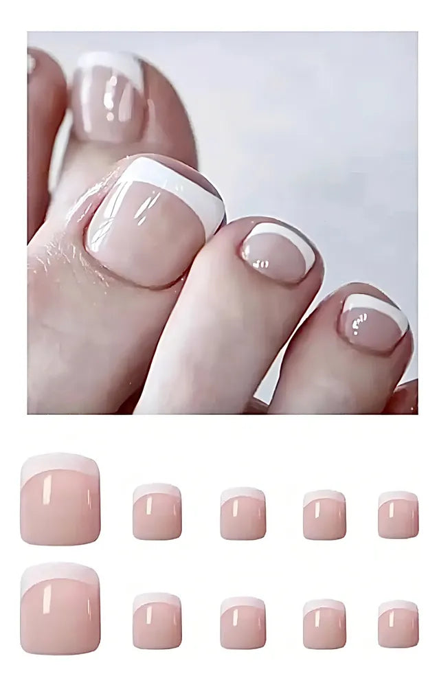 COR 01 - 28 UNHAS POSTIÇAS PARA PÉ FRANCESINHA