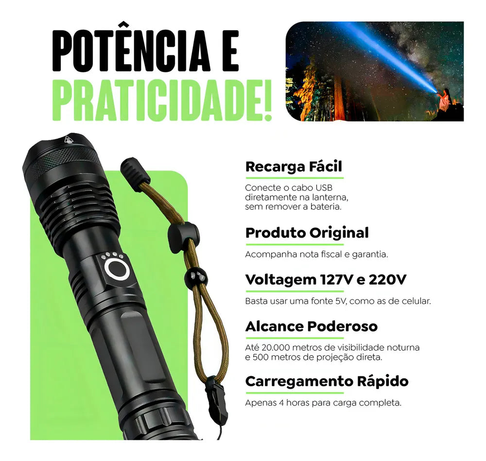 Seja para uma expedição noturna ou para atividades diárias, a Lanterna Tática P70 T9 é um acessório indispensável que combina potência, durabilidade e praticidade. Invista em segurança e visibilidade com este produto de alta performance.